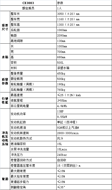 6、本車(chē)沖洗機(jī)為汽油動(dòng)機(jī)泵組,采用單缸四沖程汽油機(jī),強(qiáng)勁有力最大沖洗壓力240bar。